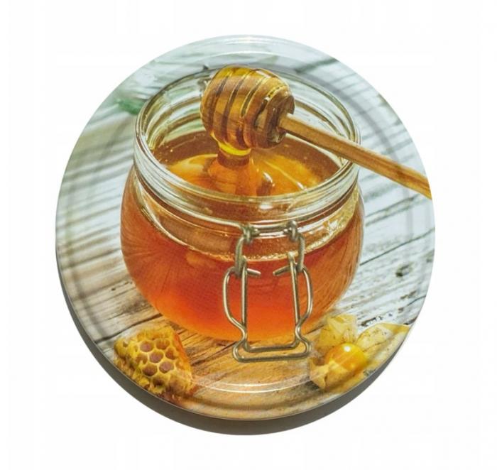 šroubovací vrchnák na klasický pohár na med (faceta 720 ml) so vzorom "pohár medu"