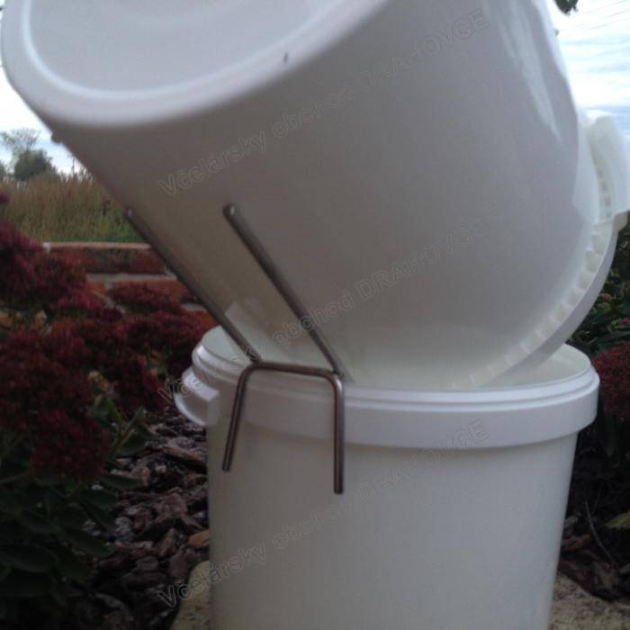 Odkvapkávač na vedrá vyrobený z pevného materiálu. Slúži na osadenie vedra na iné vedro, alebo nádobu v takej polohe, pri ktorej z nej môže stekať med, ktorý zostal na stenách nádoby. Vhodný na akékoľvek nádoby. Šetrí čas včelára pri medobraní. Vďaka tejto pomôcke môžete využit med takmer bez zbytku. Čistenie nádob je jednoduchšie aj vďaka tomu, že na stenách nádoby zostane len veľmi malé množstvo medu.