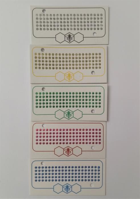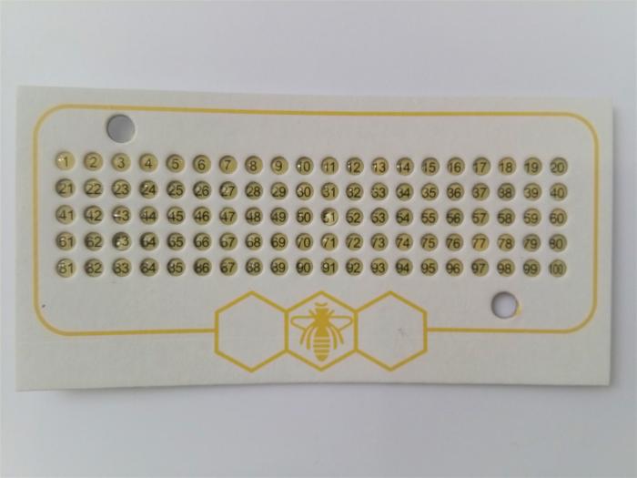 Opalitové značky na značenie včelích matiek.