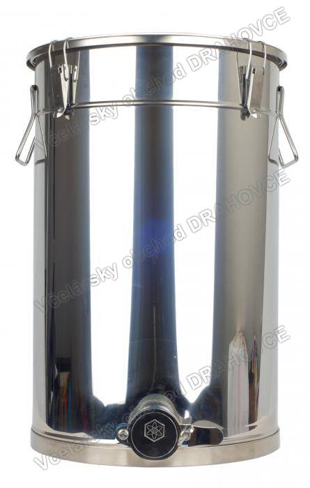 Nerezová nádoba na uloženie a stáčanie 35 l medu (podľa hustoty cca 50 kg medu).