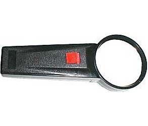 Ručná lupa so sklenenou šošovkou s priemerom 65 mm a s malou žiarovkou.