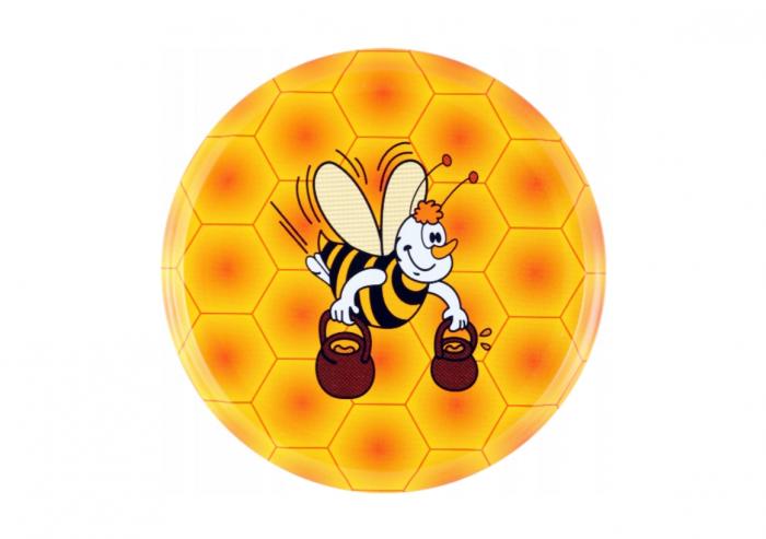 Kovový vrchnák s potlačou kreslenej včielky ("Vilka")